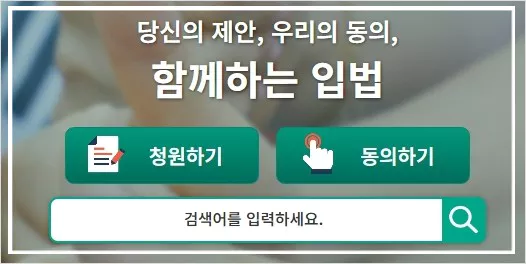 청원을 통해 누구나 적극적으로 의견을 제시할 수 있으니 국민청원 제도를 적극 활용하시기 바랍니다. 아래 버튼을 통해 바로 국민청원홈페이지를 바로 방문하실 수 있습니다.