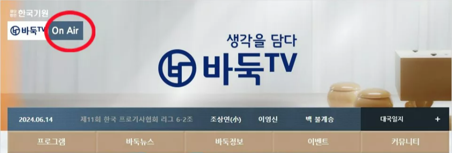 바둑TV 홈페이지에서 생중계를 보는 방법은 간단합니다.