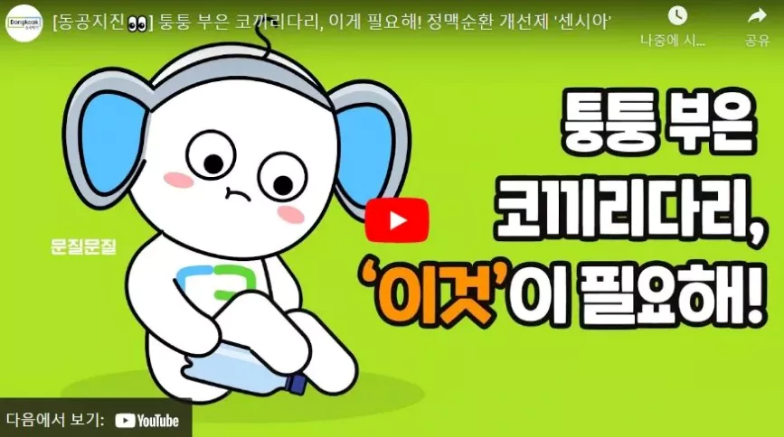 센시아는 동국제약에서 만든 정맥순환 개선제입니다. 주로 나이 든 여성들이 하지 정맥류 등의 질환을 앓기 쉽다고 생각하지만, 젊은 나이에도 하지부종으로 고생하는 경우가 꽤 된다고 합니다.