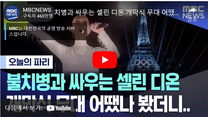셀린 디온 파리 올림픽 피날레 '사랑의 찬가' 불치병 딛고 선 최고의 디바