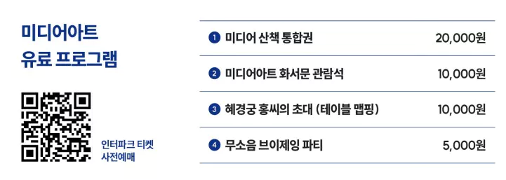 수원화성 미디어아트쇼 관람 시 예매가 필요한 유료 프로그램은 네 가지입니다.
