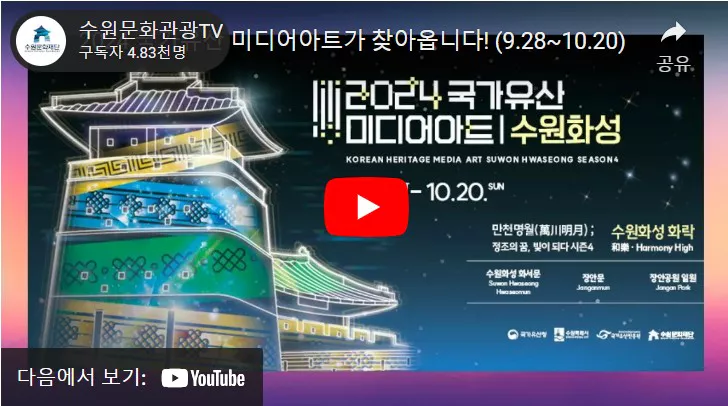 2024년 9월 28일부터 10월 20일까지 수원화성 화서문, 장안문 일대에서 펼쳐질 이번 미디어아트 시즌4는 ‘수원화성 화락(和樂)’이라는 주제로 진행됩니다.
