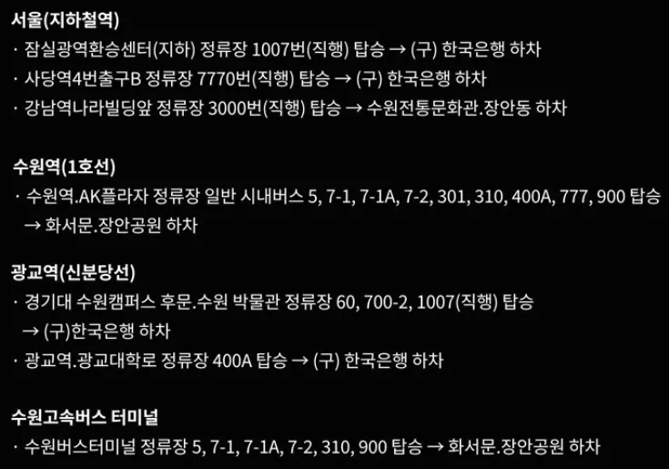 수원화성 미디어아트쇼 대중교통 이용방법
