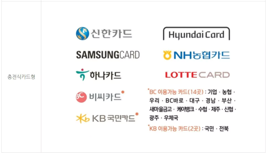 충전식 카드형은 소비자가 보유하고 있는 카드를 앱에 등록한 뒤 충전하고 실물카드결제 방식으로 사용하는 방법입니다. 등록 가능한 카드사는 신한, 삼성, 하나, 비씨, KB국민, 현대, NH농협, 롯데카드이고 향후 다른 곳들도 추가될 예정이라고 합니다.