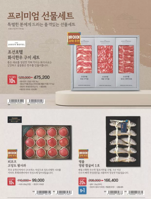 20만 원 이상의 프리미엄 선물세트는 올해 물량이 20% 증가하여 더 많은 고객들이 고급스러운 선물을 선택할 수 있도록 했습니다.