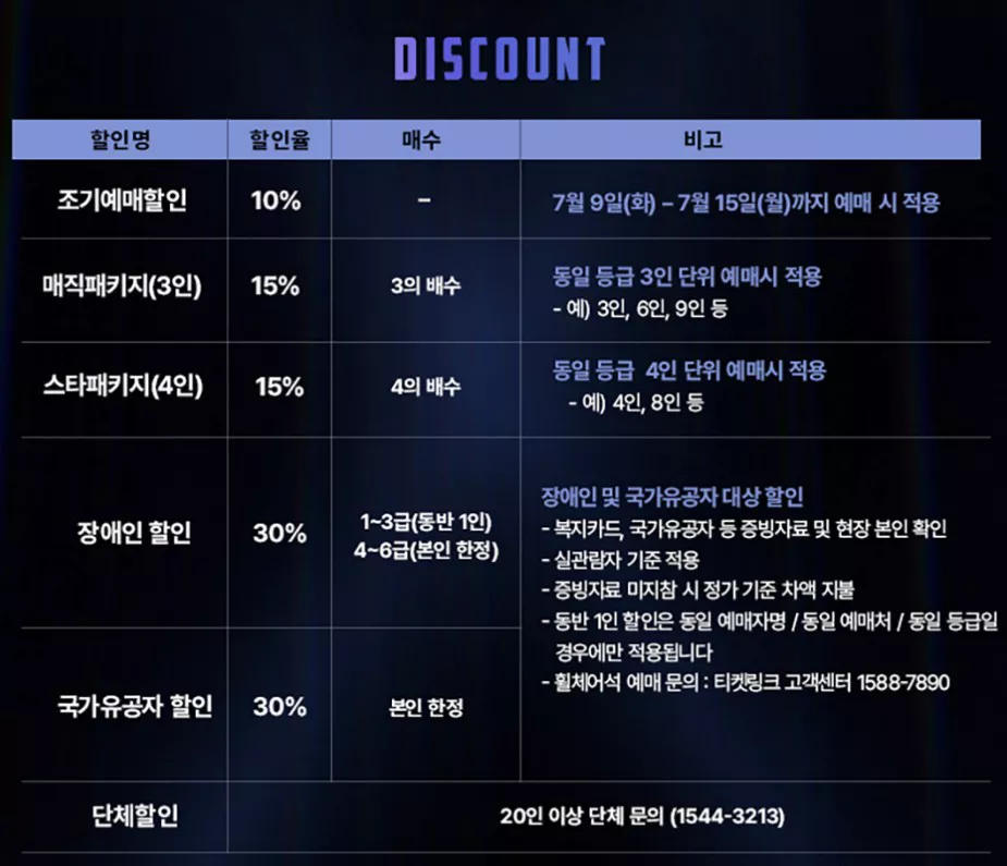 • 티켓 가격 : VIP석 130,000원 R석 110,000원 S석 80,000원 A석 60,000원