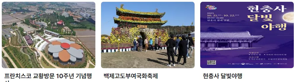 충청남도에서 열리는 10월 축제와 행사 일정을 먼저 간단히 안내해 드리겠습니다.